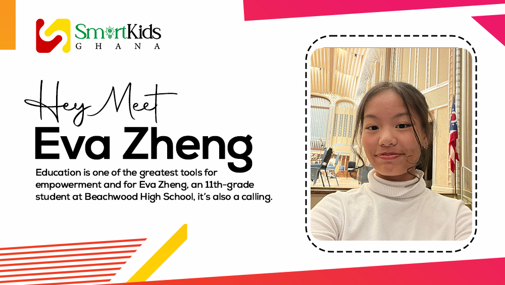 Education is one of the greatest tools for empowerment and for Eva Zheng, an 11th-grade student at Beachwood High School, it’s also a calling. As one of SmartKids Ghana’s newest volunteer Zoom Teachers, Eva brings compassion, intellect, and a heartfelt sense of purpose to her mission of expanding access to quality education for children across Ghana.