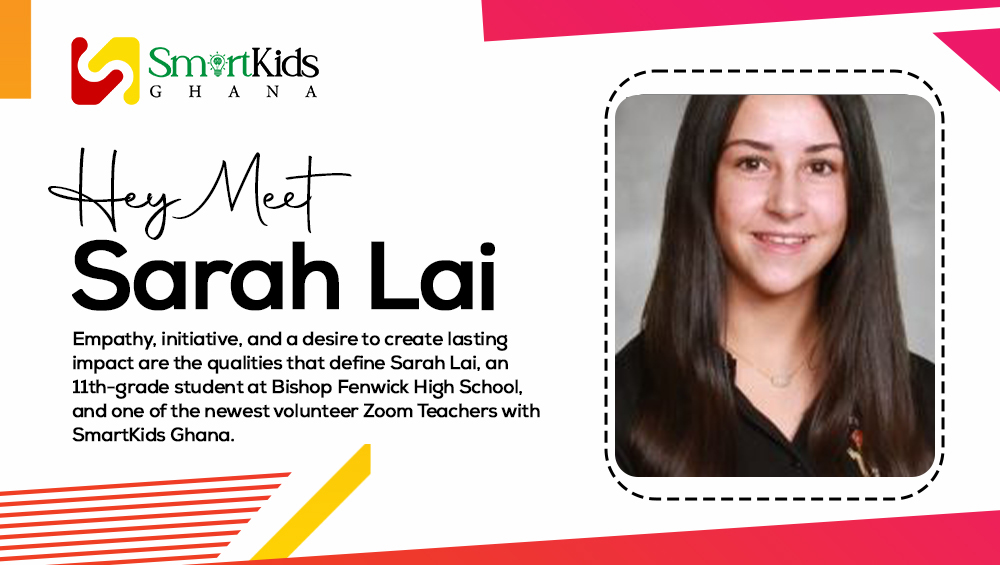 Empathy, initiative, and a desire to create lasting impact are the qualities that define Sarah Lai, an 11th-grade student at Bishop Fenwick High School, and one of the newest volunteer Zoom Teachers with SmartKids Ghana.